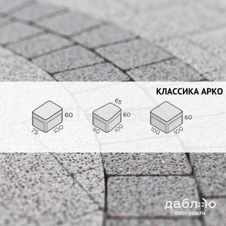 Брусчатка Steingot Классика Арко Fumo Bello. Тротуарная плитка в классическим стиле, включающая два прямых камня и один клиновидный. Данная форма очень удобно укладывается и в ряд, и в окружность, что позволяет выложить ее около фонтана, водоема или сделать дорожку более плавной. Может быть изготовлена в любом цвете из палитры производителя. Продажа брусчатки производится кратно целым поддонам!- Высота: 60 мм