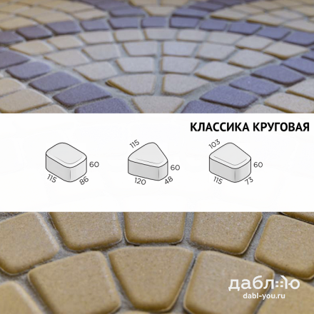 Брусчатка Steingot Классика круговая Желтая. Тротуарная плитка в классическим стиле с ярко выраженными фасками, состоящая из трех камней разных размеров, которые легко сочетать и создавать красивые узоры на мощении. Форма предназначена для выполнения простых круговых и сложных радиусных узоров. Продажа брусчатки производится кратно целым поддонам!- Высота: 60 мм