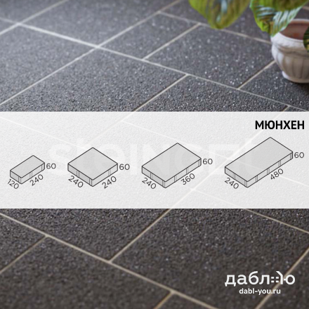 Брусчатка Steingot Мюнхен Stella Nera. Состоящая из четырех камней разного размера форма «Мюнхен» позволяет использовать при укладке огромное количество схем раскладки: линейную, разнонаправленную, паркетную и многие другие. Оригинальная форма, созданная специально для воплощения разнообразных и неповторимых дизайнов благоустройства. Продажа брусчатки производится кратно целым поддонам!- Высота: 60 мм