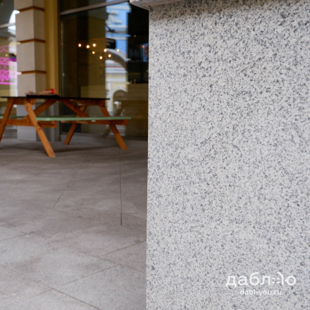 Благодаря своему светло-серому окрасу, является одним из популярнейших гранитов. Из-за своих высоких характеристик прочности, широко используется в дорожном благоустройстве: брустчатка, бордюры, мощение. Также часто используется частном строительстве - подоконники, столешницы, лестницы, монументы, облицовка.Характеристики