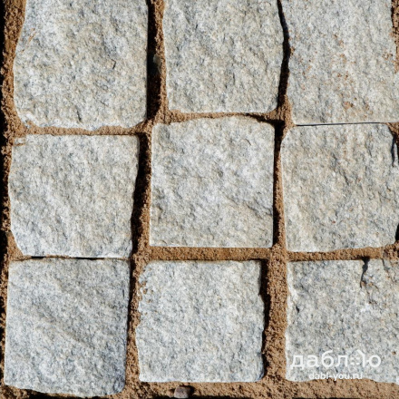 Гранитная брусчатка Мансуровская колотая размер 100х100х50 мм. Брусчатка из белого гранита с колотыми гранями для тротуаров и парковок. Подходит для частного сектора и городского мощения.- Область применения: мощение