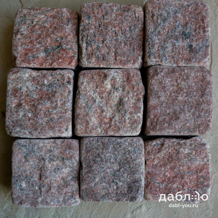 Гранитная брусчатка Сюскюянсаари галтованная в размере 100x100x50 мм. Брусчатка с необычным малиновым цветом и красивым рисунком. Отлично подойдет для мощения дорожек и парковочных зон.- Область применения: мощение