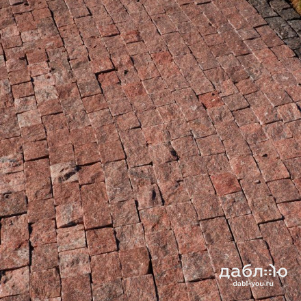 Гранитная брусчатка Сюскюянсаари пилено-колотая (верх колотый), размер 100х100х100 мм. Красивый гранит в красном цвете с вкраплениями серого и черного будет отлично смотреться на Вашем участке. Подходит для мощения пешеходных дорожек и парковок.- Область применения: мощение
