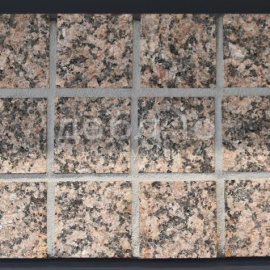 Гранитная брусчатка Ладожская серо-розовая галтованная 100x100x50 мм