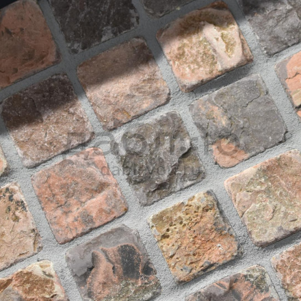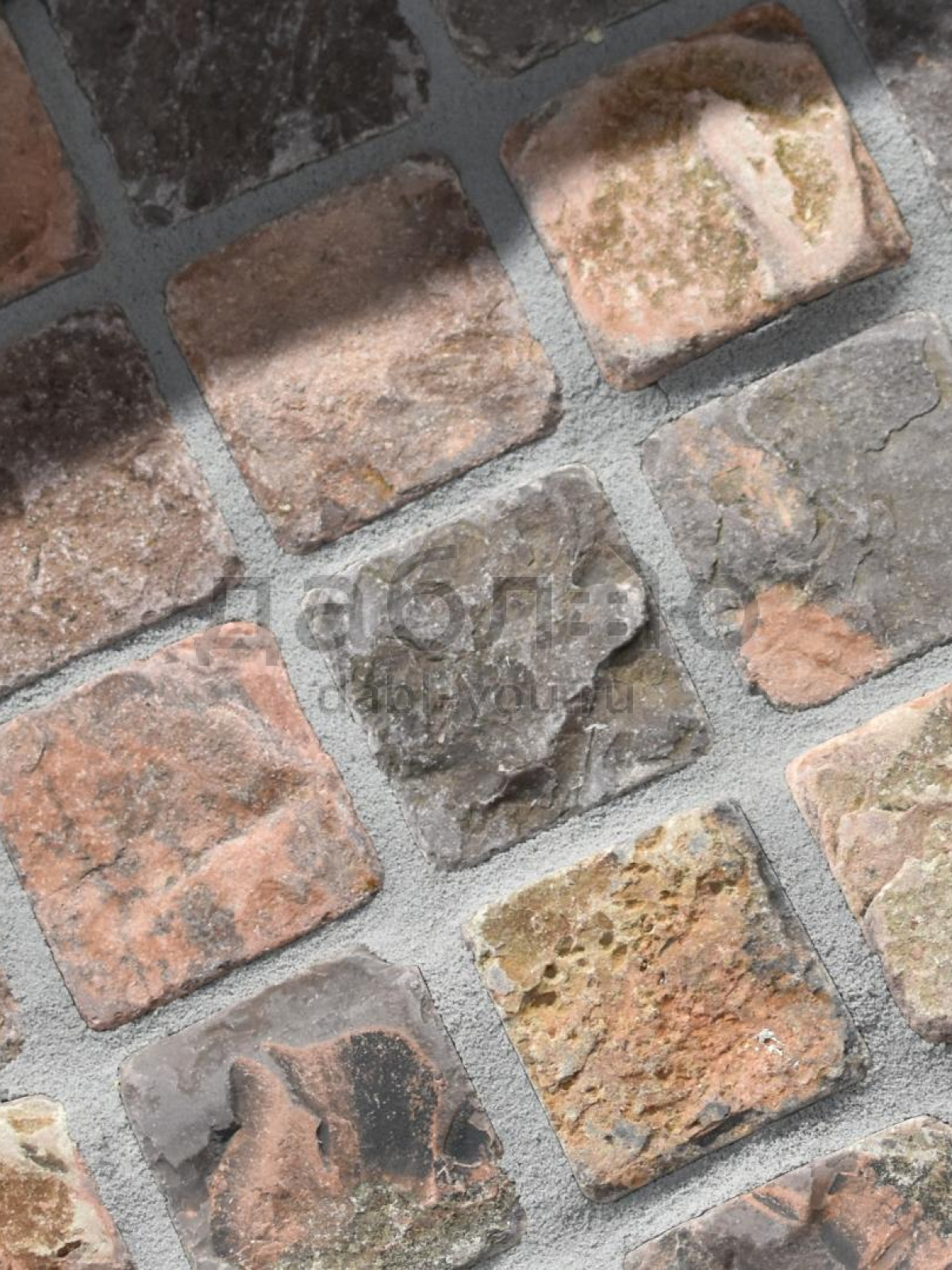 Алевролит брусчатка галтованная 100x100x50 мм. Брусчатка из алевролита отличается особой прочностью и благородным внешним видом. Используется для мощения дорожек и парковок. Отлично гармонирует со многими другими материалами: бетон, клинкер, дерево.- Вес: 120 кг/м2