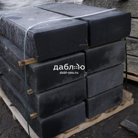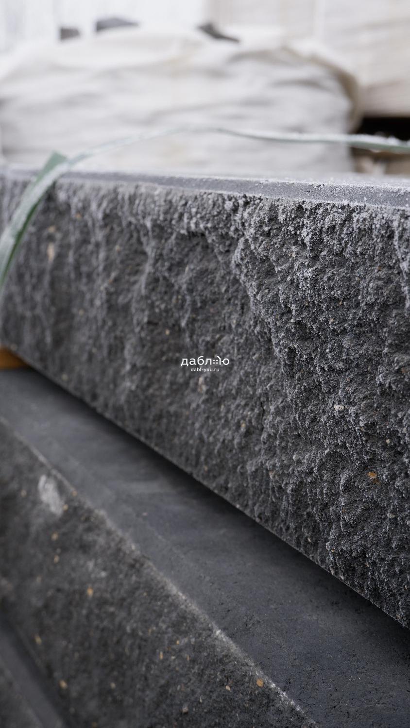 Бетонная ступень SteinRus черная, 1000х380х180 мм. Монолитная ступень – готовое ландшафтное решение, не требует облицовки, предназначена для строительства наружных профильных и фронтальных лестниц. Готовые марши с «колотой» поверхностью эффектно сочетаются с художественной облицовкой фасада и тротуарной плиткой.- Класс прочности на сжатие – не менее B30