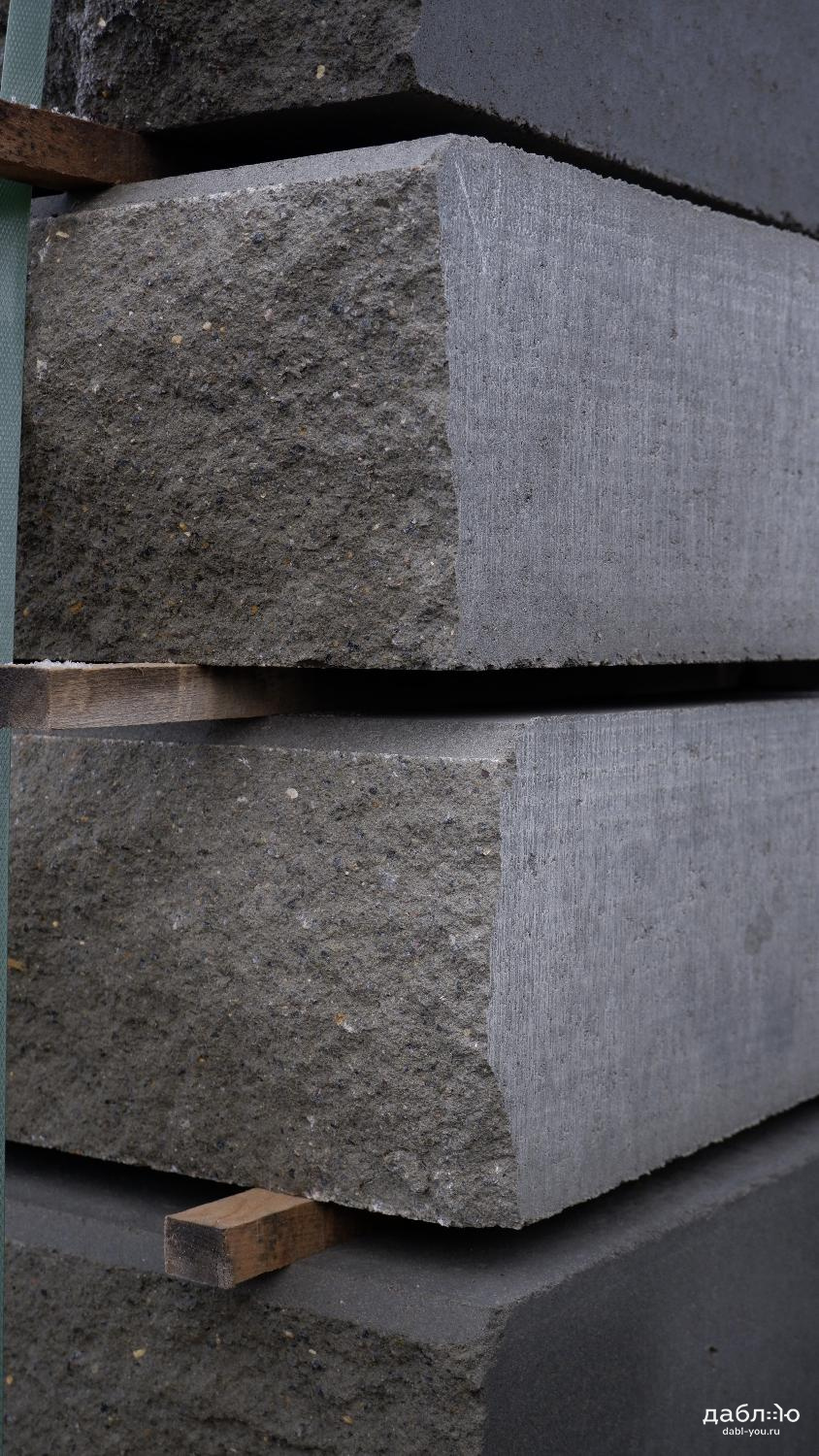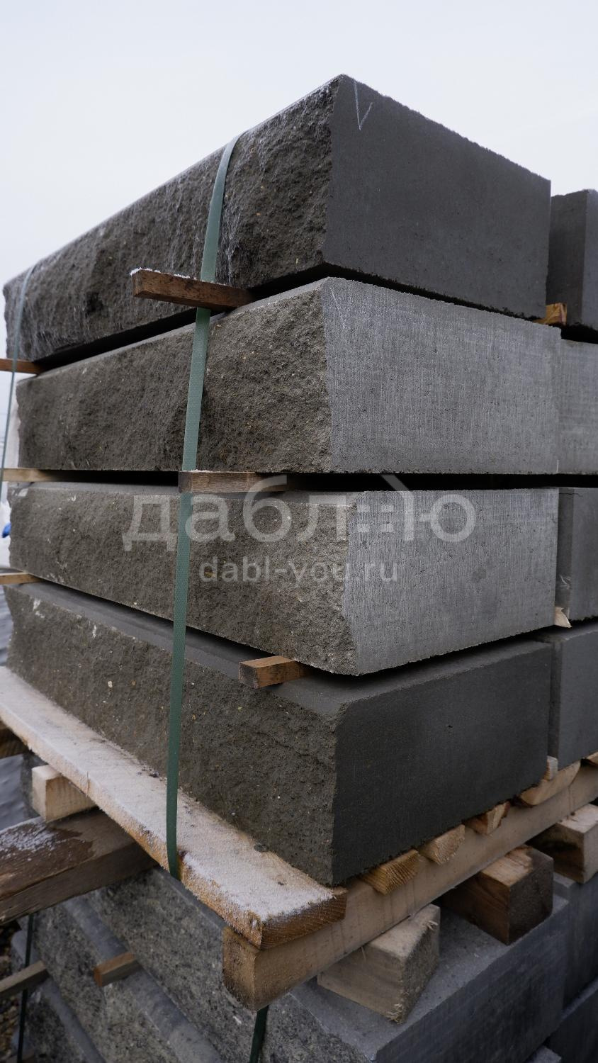 Бетонная ступень SteinRus серая, 1000х380х180 мм. Монолитная ступень – готовое ландшафтное решение, не требует облицовки, предназначена для строительства наружных профильных и фронтальных лестниц. Готовые марши с «колотой» поверхностью эффектно сочетаются с художественной облицовкой фасада и тротуарной плиткой.- Класс прочности на сжатие – не менее B30