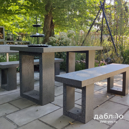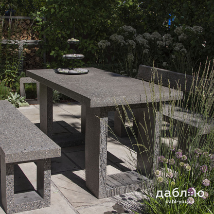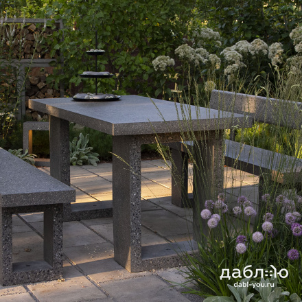Бетонный стол Concretika. В единой стилистике с чашами, подставками и скамьями был создан стол из фибробетона, за которым с комфортом может разместиться для отдыха компания из 6 человек.Габариты: 1500 x 750 x 760 мм