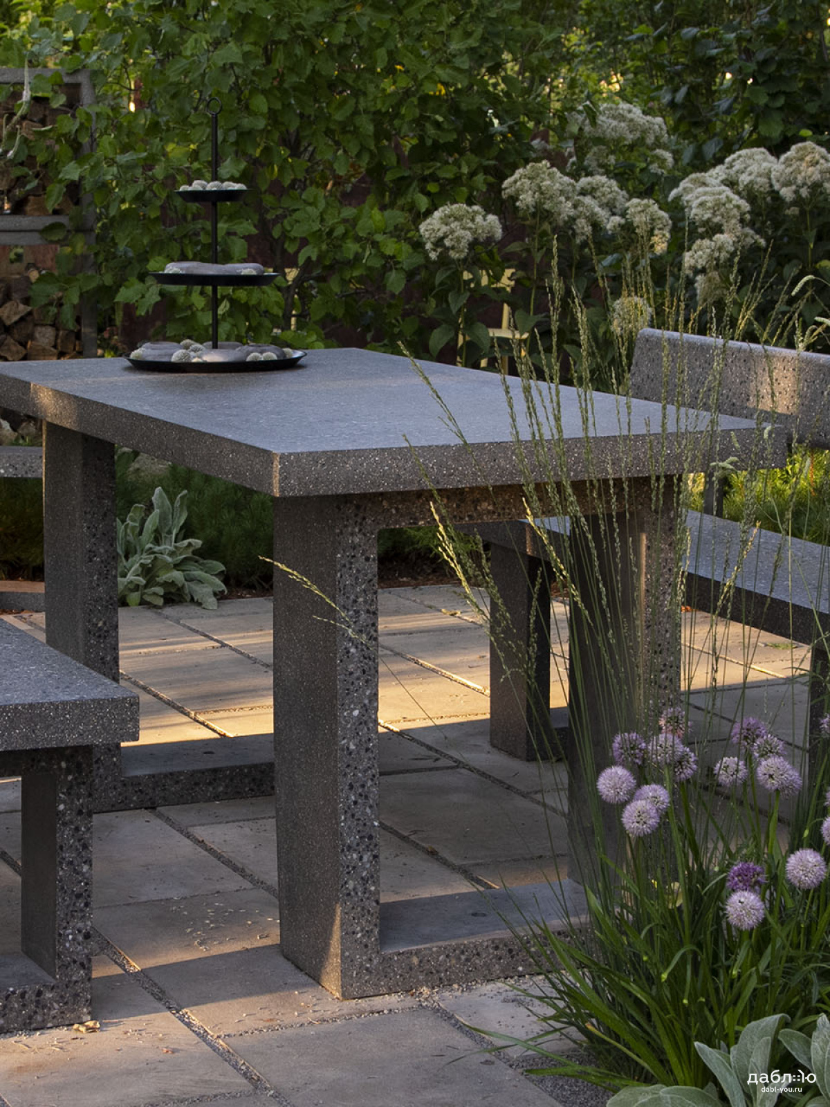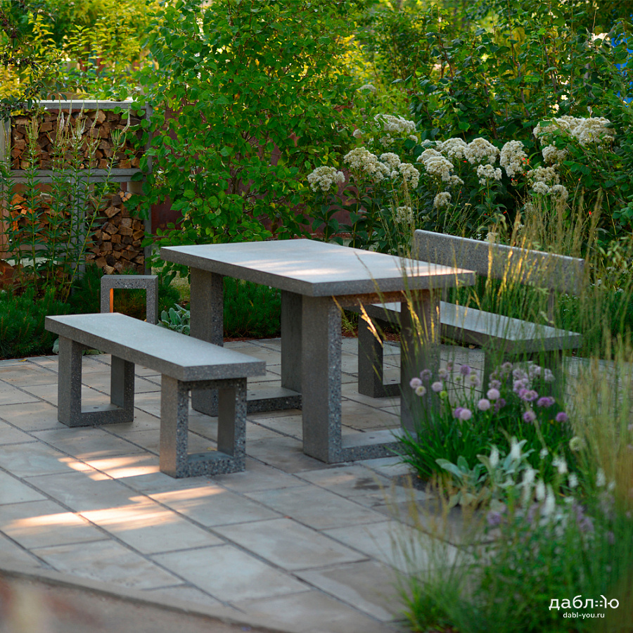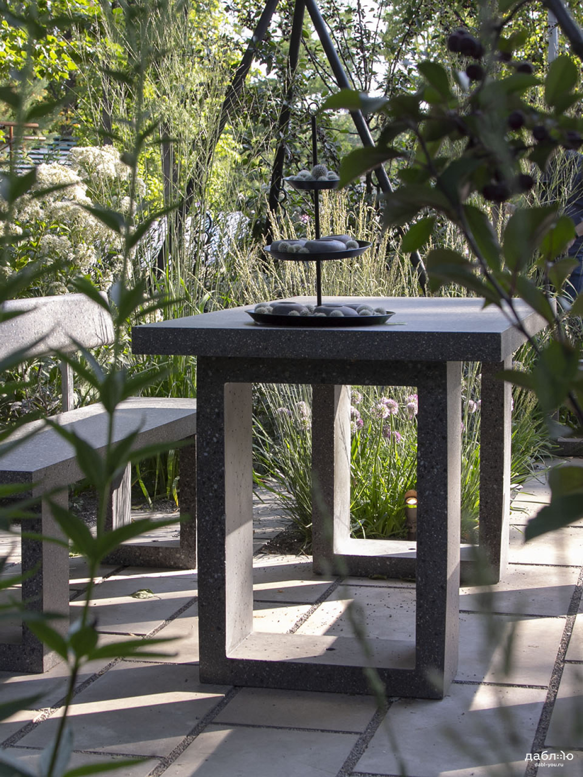 Бетонный стол Concretika. В единой стилистике с чашами, подставками и скамьями был создан стол из фибробетона, за которым с комфортом может разместиться для отдыха компания из 6 человек.Габариты: 1500 x 750 x 760 мм
