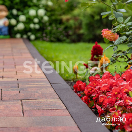 Бордюр садовый Steingot темно-коричневый 1000х200х80. Садовые бордюры – не только декоративный элемент, но и основа проекта: именно с их монтажа начинаются работы по мощению. Основная функция – предотвращение горизонтальной деформации поверхности мощения. Продажа производится кратно целым поддонам!- Высота: 80 мм