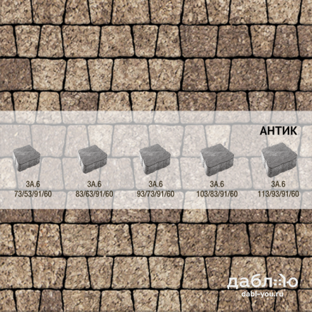 Брусчатка Выбор Антик Листопад гранит 3А.6 Хаски. Готовое решение для любителей старины и роскоши. В одной коллекции собрана плитка пяти различных форм, что позволяет получить интересную выкладку, в том числе и круговую. Плитка создает гладкую, почти бесшовную поверхность, благодаря чему широко применяется на пешеходных площадях.Kоличество шт/м2: 138.3