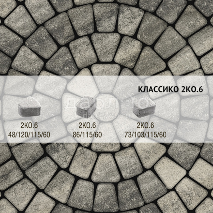 Брусчатка Выбор Классико Листопад 2КО.6 М Антрацит. Бетонная тротуарная плитка из серии Классико. Эта коллекция отличается сходством с натуральным камнем и правильной геометрической формой.Высота: 60 мм