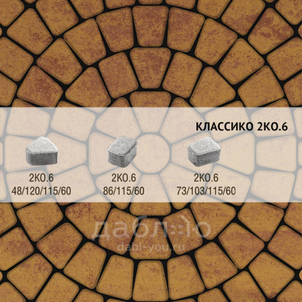 Брусчатка Выбор Классико Листопад 2КО.6 М Каир. Бетонная тротуарная плитка из серии Классико. Эта коллекция отличается сходством с натуральным камнем и правильной геометрической формой.Высота: 60 мм