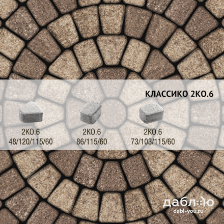 Брусчатка Выбор Классико Листопад 2КО.6 М Хаски. Бетонная тротуарная плитка из серии Классико. Эта коллекция отличается сходством с натуральным камнем и правильной геометрической формой.Высота: 60 мм