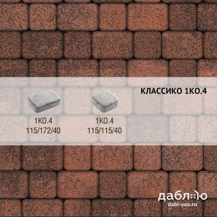 Брусчатка Выбор Классико Листопад гранит 1КО.4 Клинкер. Прекрасная альтернатива клинкерной брусчатке - вибропрессованная тротуарная плитка отечественного завода Выбор. Шикарный красно-пестрый цвет. В коллекцию входят 2 типоразмера со скругленными краями. Верхнее покрытие брусчатки - гранитная крошка. Она впресована в брусчатку более чем на 1 см в глубину. Срок службы такой брусчатки более 25 лет. Толщина 40 мм используется только для мощения пешеходных зон.Высота: 40 мм