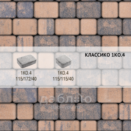 Брусчатка Выбор Классико Листопад гранит 1КО.4 Мустанг. Бетонная брусчатка толщиной 40 мм для пешеходных нагрузок. В этом же цвете выпускаются и другие форматы и толщины для парковок и проезжих частей. В зависимости от ландшафтного дизайна это брусчатка прекрасно сочетается с гранитной и клинкерной брусчаткой, природным камнем - песчаником, известняком, шунгитом.Высота: 40 мм