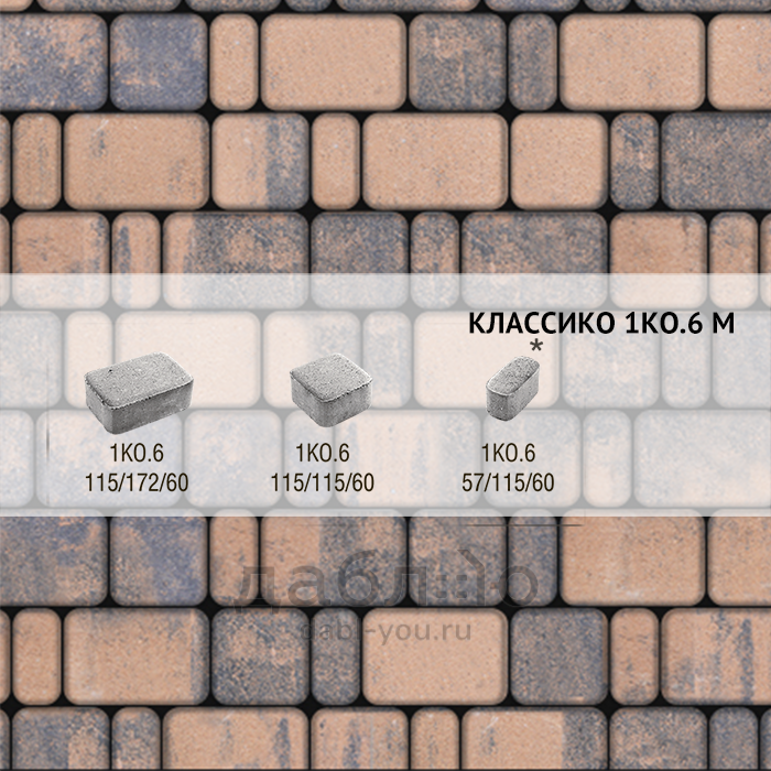 Брусчатка Выбор Классико Листопад гранит 1КО.6 Мустанг. Бетонная тротуарная плитка из серии Классико. Эта коллекция отличается сходством с натуральным камнем и правильной геометрической формой.Высота: 60 мм