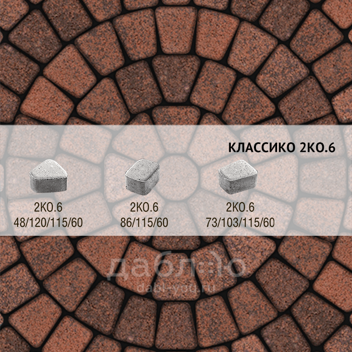 Брусчатка Выбор Классико Листопад гранит 2КО.6 М Клинкер. Бетонная тротуарная плитка из серии Классико. Эта коллекция отличается сходством с натуральным камнем и правильной геометрической формой.Высота: 60 мм