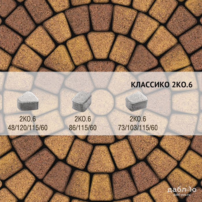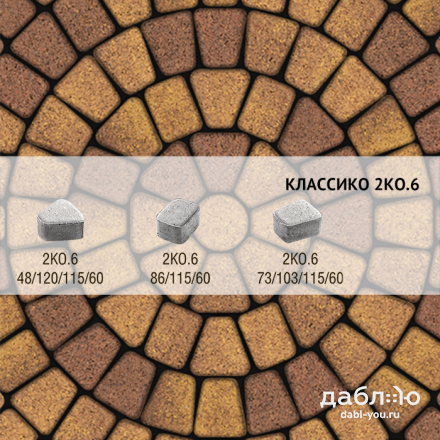Брусчатка Выбор Классико Листопад гранит 2КО.6 М Осень. Бетонная тротуарная плитка из серии Классико. Эта коллекция отличается сходством с натуральным камнем и правильной геометрической формой.Высота: 60 мм