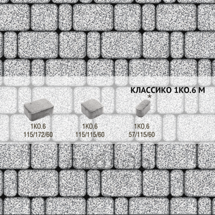 Брусчатка Выбор Классико Стоунмикс 1КО.6 Бело-черный. Бетонная тротуарная плитка из серии Классико. Эта коллекция отличается сходством с натуральным камнем и правильной геометрической формой.Высота: 60 мм