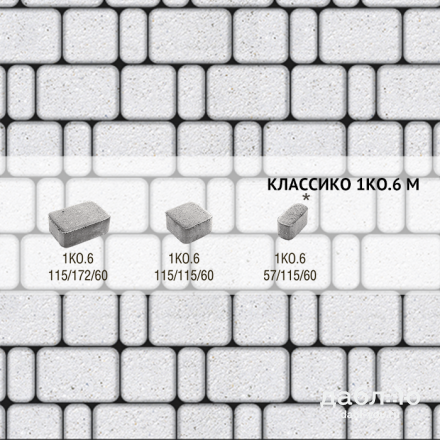 Брусчатка Выбор Классико Стоунмикс 1КО.6 Белый. Белоснежная брусчатка с гранитной крошкой для парковок и дорожек. Таким форматом брусчатки удобно выкладывать круговые элементы. Гарантированная стойкость цвета. Продукция сертифицирована, срок службы более 25 лет.Высота: 60 мм