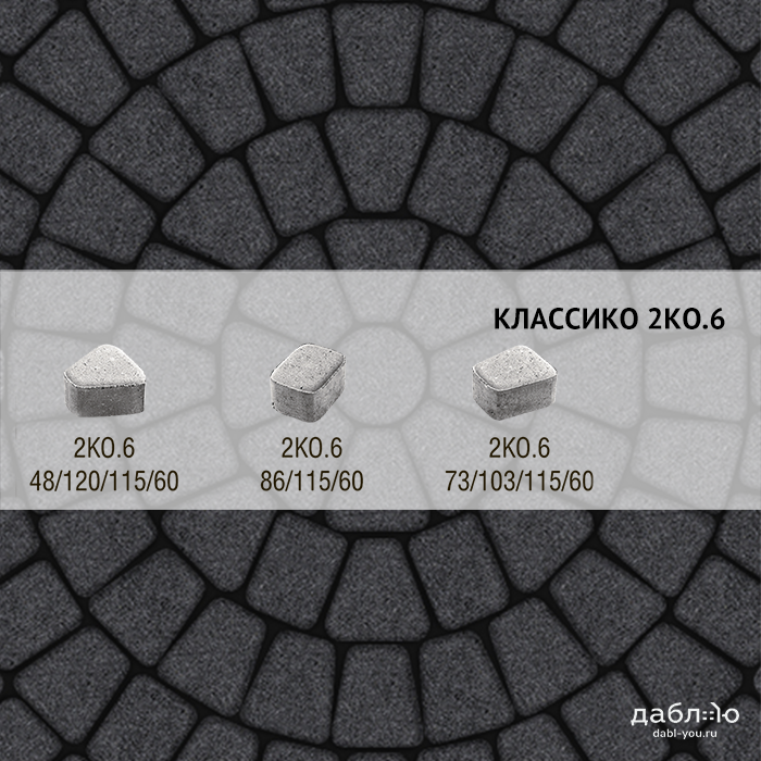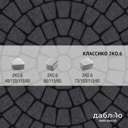 Брусчатка Выбор Классико Стоунмикс 2КО.6 М Черный. Вибропрессованная тротуарная плитка насыщенного черного цвета. Благодаря верхнему покрытию из натуральной черной гранитной крошки цвет не потеряет своей привлекательности на протяжении многих десятилетий. Формат брусчатки включает в себя размер из трех камней - треугольник, прямоугольник и трапеция с округленными краями. Такие формы позволяют удобно выкладывать различные геометрические формы без подпила плитки. Плитка прочная и морозостойкая, идеально подходит под дорожки и парковки легковых автомобилей. Цвет будет идеально сочетаться с шунгитом, гранитом Габбро и черной гранитной крошкой.Высота: 60 мм