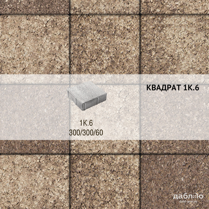 Брусчатка Выбор Квадрат Листопад 1К.6 Хаски. Крупноформатная бетонная брусчатка 300*300 мм, с гладкой фактурой пестрого оттенка. Толщина 60 мм позволяет применять ее для дорожек и парковок. Удобна в укладке благодаря большому размеру и наличию фаски. Коричневый цвет брусчатки отлично сочетается другими материалами для ландшафтного дизайна и мощения.Высота: 60 мм