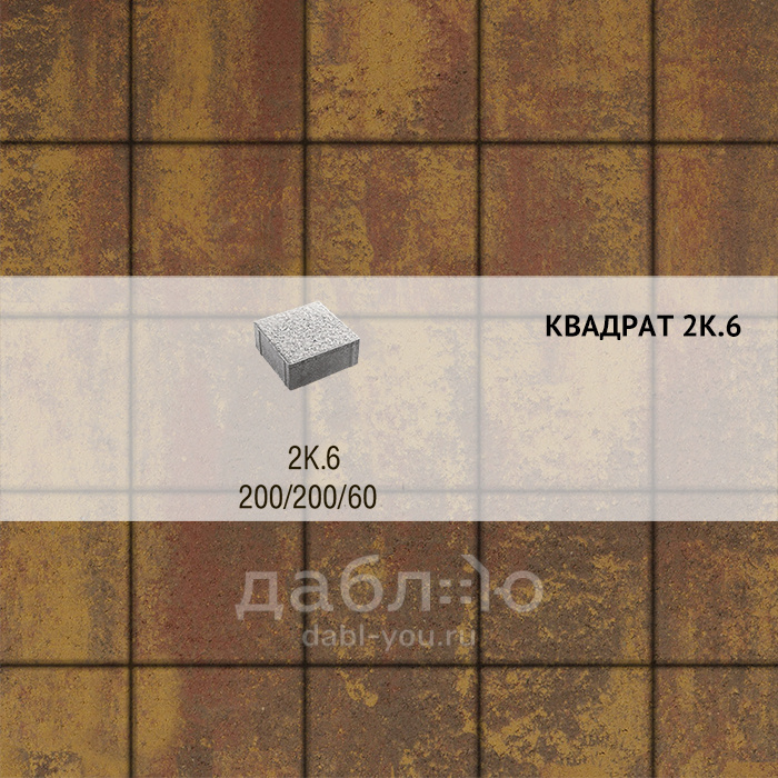 Брусчатка Выбор Квадрат Листопад 2К.6 Осень. Правильная форма этой плитки дает возможность создавать разные рисунки для мощения, при этом отлично сочетаясь с формами других коллекций плитки.Высота: 60 мм