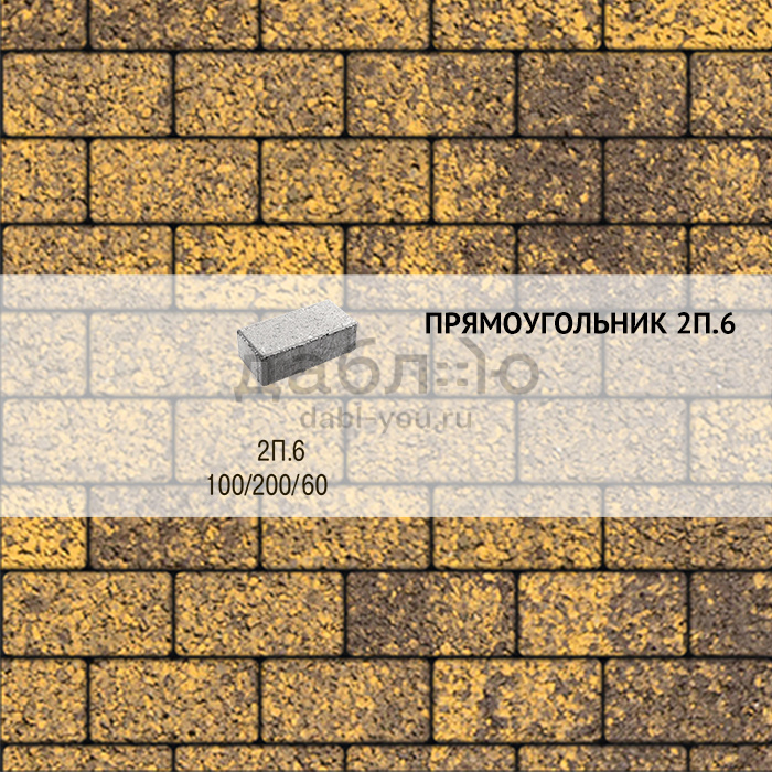 Брусчатка Выбор Прямоугольник 2П.6 Янтарь. Вибропресованная брусчатка российского производства. Гладкая фактура. Приятный теплый желтый пестрый оттенок. Стандартный формат брусчатки 100*200*60 мм. Применяется для мощения дорожек, отмосток, парковок. Имеет максимальный коэффициент истирания. Прочный, долговечный и красивый материал. Продукт премиум сегмента в бетонных изделиях.Размеры, комплект: 200x100x60 мм