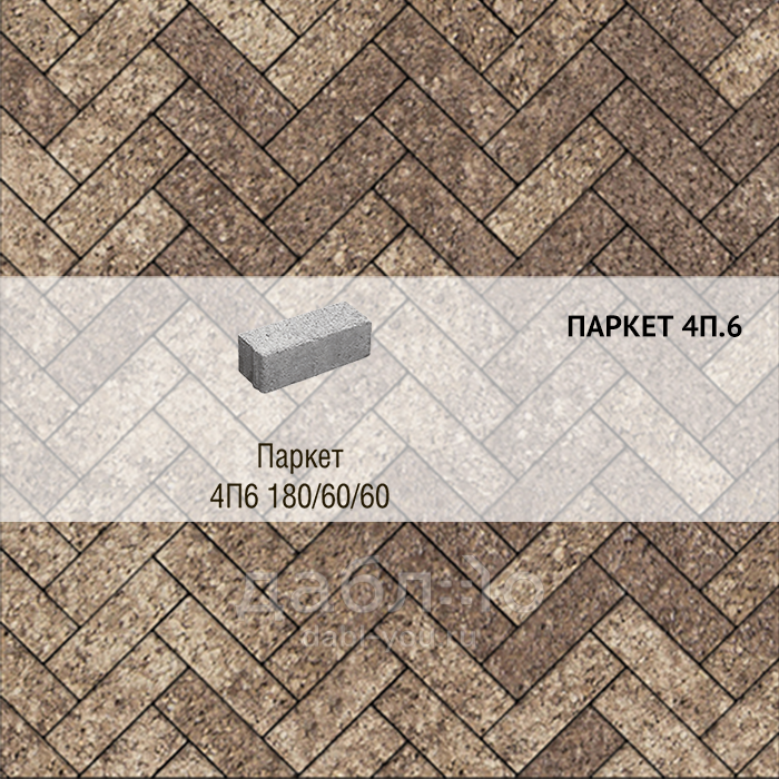 Брусчатка Выбор Паркет Листопад 4П.6 Хаски. Бетонная тротуарная плитка из серии Паркет. Правильная форма этой плитки дает возможность создавать разные рисунки для мощения, при этом отлично сочетаясь с формами других коллекций плитки.Высота: 60 мм