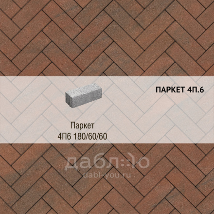 Брусчатка Выбор Паркет Листопад 4П.6 Клинкер. Цвет Клинкер - имитирует оттенок классического пестрого красного клинкера. 4П.6 это паркетный формат, размер 180*60 мм, и толщина 60 мм. Коллекция Листопад отличается своими пестрыми оттенками, похожими на опавшую листву. Данную брусчатку можно использовать для дорожек и парковок.Высота: 60 мм