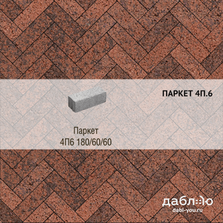 Брусчатка Выбор Паркет Листопад гранит 4П.6 Клинкер. Бетонная тротуарная плитка из серии Паркет. Правильная форма этой плитки дает возможность создавать разные рисунки для мощения, при этом отлично сочетаясь с формами других коллекций плитки.Высота: 60 мм