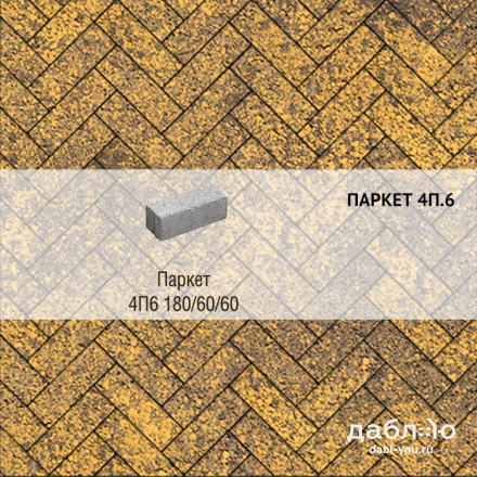 Брусчатка Выбор Паркет Листопад гранит 4П.6 Янтарь. Бетонная тротуарная плитка из серии Паркет. Правильная форма этой плитки дает возможность создавать разные рисунки для мощения, при этом отлично сочетаясь с формами других коллекций плитки.Высота: 60 мм