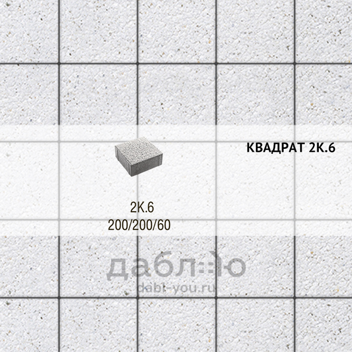 Брусчатка Выбор Квадрат Стоунмикс 2К.6 Белый. Правильная форма этой плитки дает возможность создавать разные рисунки для мощения, при этом отлично сочетаясь с формами других коллекций плитки.Высота: 60 мм