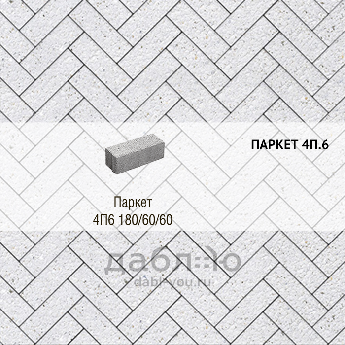 Брусчатка Выбор Паркет Стоунмикс 4П.6 Белый. Бетонная тротуарная плитка из серии Паркет. Правильная форма этой плитки дает возможность создавать разные рисунки для мощения, при этом отлично сочетаясь с формами других коллекций плитки.Высота: 60 мм