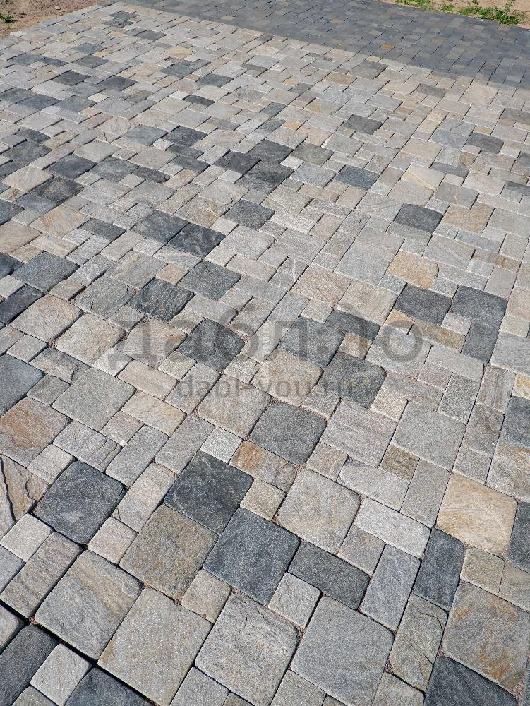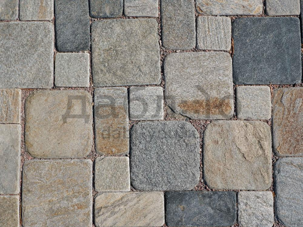 Брусчатка из кварцита морская волна галтованная 100x100x20-30 мм