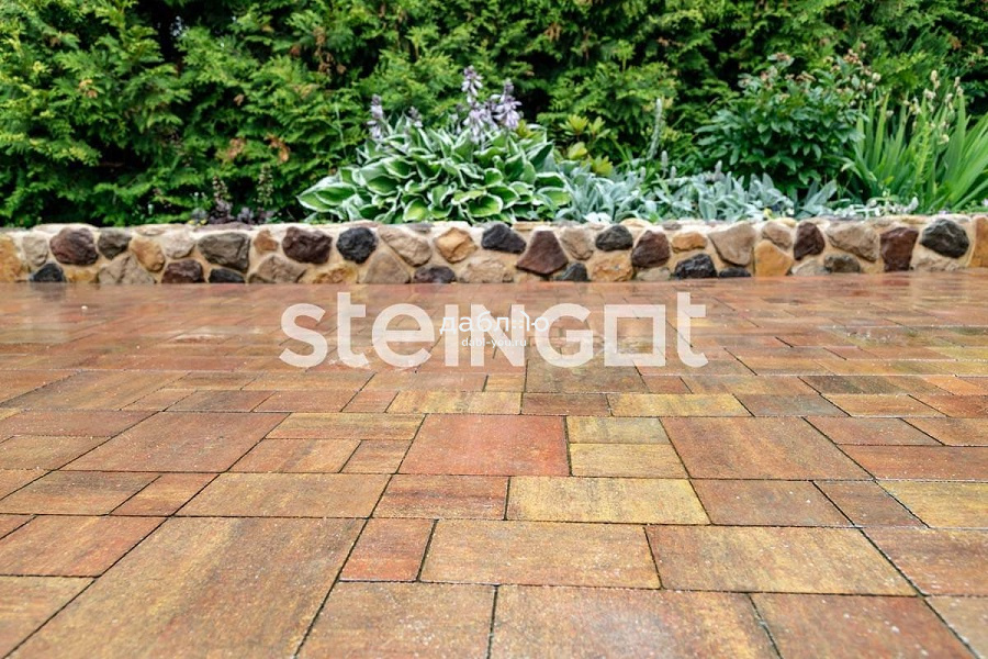 Брусчатка Steingot Бавария Терракота. Эта брусчатка состоит из камней четырех размеров, подходящих для любых архитектурных решений. Поверхности плитки при этом идеально ровная для более приятного пользования. Продажа брусчатки производится кратно целым поддонам!- Высота: 60 мм