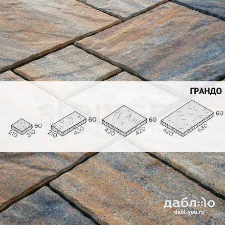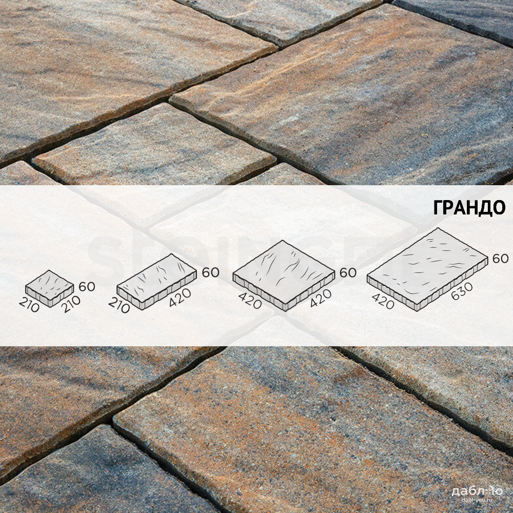 Брусчатка Steingot Грандо Штайн Бронз. Набор камней большого формата четырех размеров с фактурной поверхностью, имитирующей естественную неровную поверхность натурального камня. Идеальна для создания атмосферы солидности, надежности, прекрасно выглядит на больших открытых пространствах, подходит для мощения в коттеджных поселках. Продажа брусчатки производится кратно целым поддонам!- Высота: 60 мм