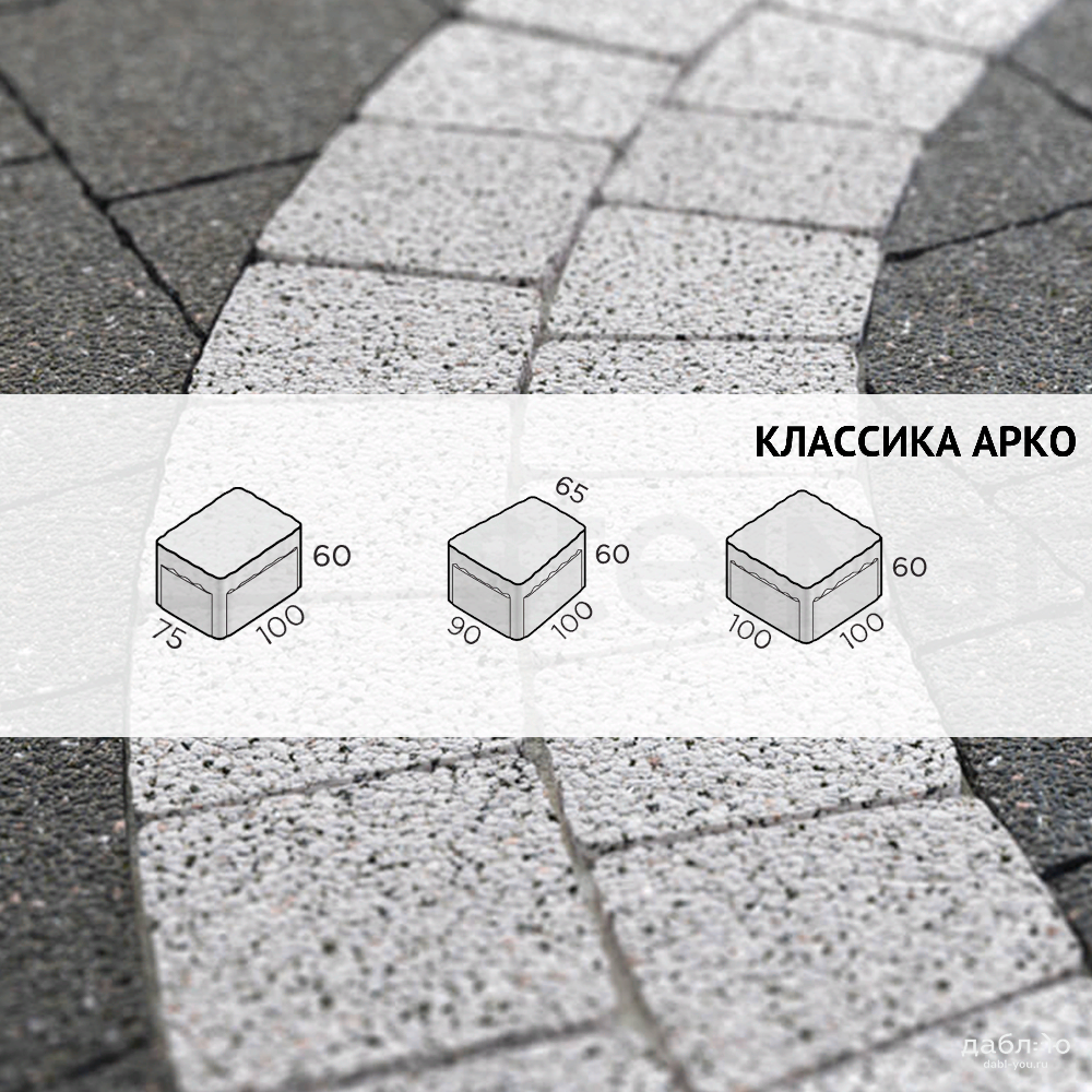 Брусчатка Steingot Классика Арко Bianco Nero. Тротуарная плитка в классическим стиле, включающая два прямых камня и один клиновидный. Данная форма очень удобно укладывается и в ряд, и в окружность, что позволяет выложить ее около фонтана, водоема или сделать дорожку более плавной. Может быть изготовлена в любом цвете из палитры производителя. Продажа брусчатки производится кратно целым поддонам!- Высота: 60 мм