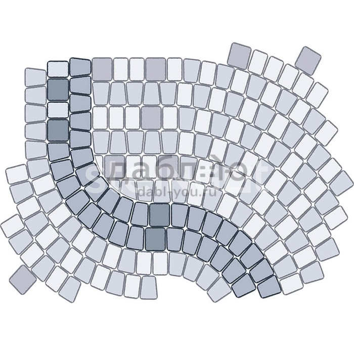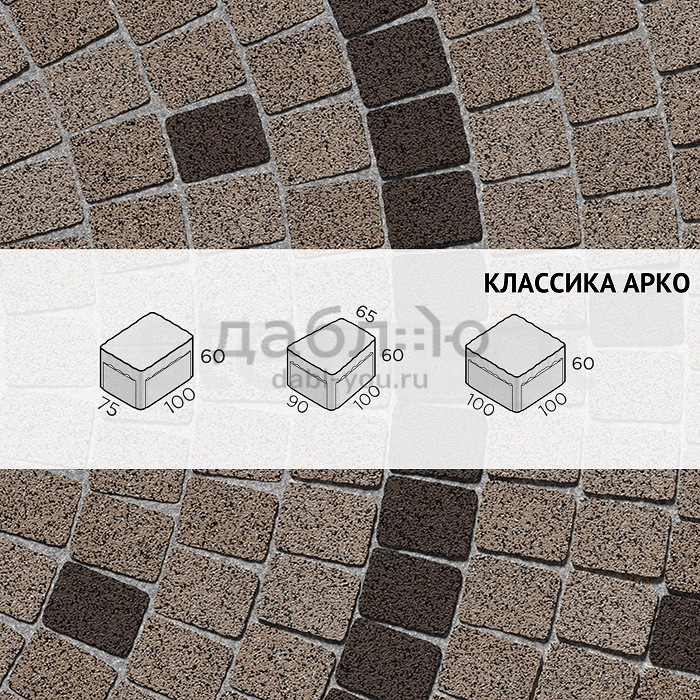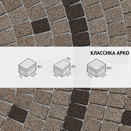 Брусчатка Steingot Классика Арко Кофейный (Bruno). Тротуарная плитка в классическим стиле, включающая два прямых камня и один клиновидный. Данная форма очень удобно укладывается и в ряд, и в окружность, что позволяет выложить ее около фонтана, водоема или сделать дорожку более плавной. Может быть изготовлена в любом цвете из палитры производителя. Продажа брусчатки производится кратно целым поддонам!- Высота: 60 мм