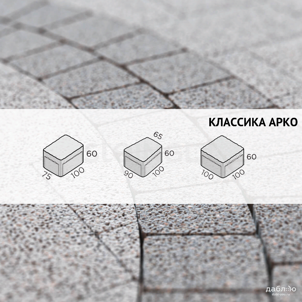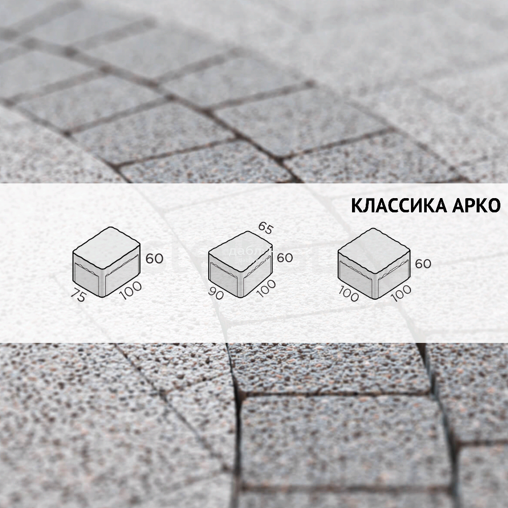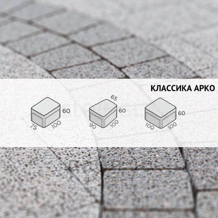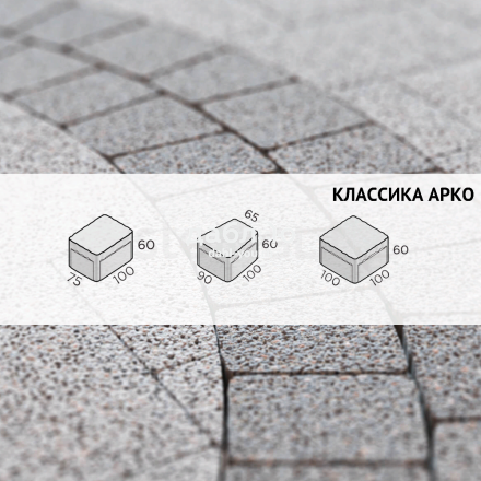 Брусчатка Steingot Классика Арко Fumo Bello. Тротуарная плитка в классическим стиле, включающая два прямых камня и один клиновидный. Данная форма очень удобно укладывается и в ряд, и в окружность, что позволяет выложить ее около фонтана, водоема или сделать дорожку более плавной. Может быть изготовлена в любом цвете из палитры производителя. Продажа брусчатки производится кратно целым поддонам!- Высота: 60 мм