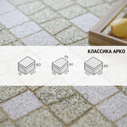 Брусчатка Steingot Классика Арко Loto Bianca. Тротуарная плитка в классическим стиле, включающая два прямых камня и один клиновидный. Данная форма очень удобно укладывается и в ряд, и в окружность, что позволяет выложить ее около фонтана, водоема или сделать дорожку более плавной. Может быть изготовлена в любом цвете из палитры производителя. Продажа брусчатки производится кратно целым поддонам!- Высота: 60 мм