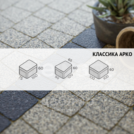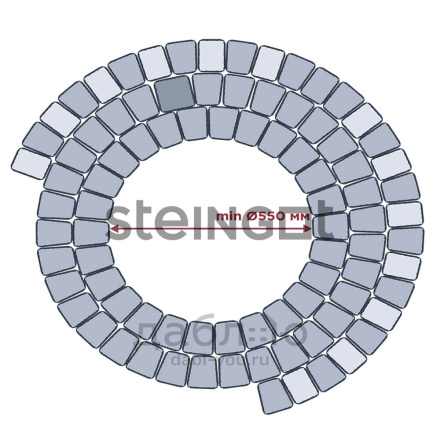 Брусчатка Steingot Классика Арко Stella Nera. Тротуарная плитка в классическим стиле, включающая два прямых камня и один клиновидный. Данная форма очень удобно укладывается и в ряд, и в окружность, что позволяет выложить ее около фонтана, водоема или сделать дорожку более плавной. Может быть изготовлена в любом цвете из палитры производителя. Продажа брусчатки производится кратно целым поддонам!- Высота: 60 мм