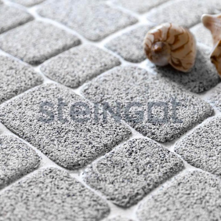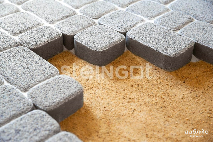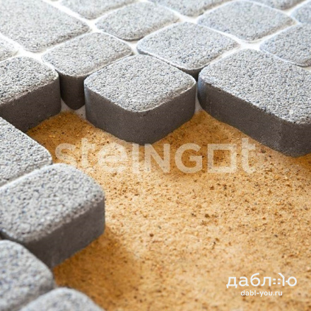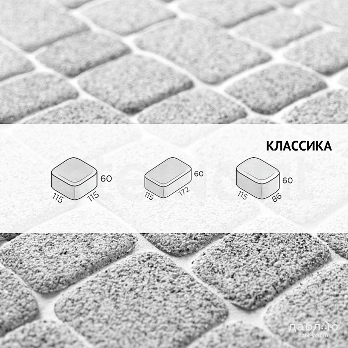 Брусчатка Steingot Классика Bianco Nero. Тротуарная плитка в классическим стиле с ярко выраженными фасками, состоящая из трех камней разных размеров, которые легко сочетать и создавать красивые узоры на мощении. Продажа брусчатки производится кратно целым поддонам!- Высота: 60 мм