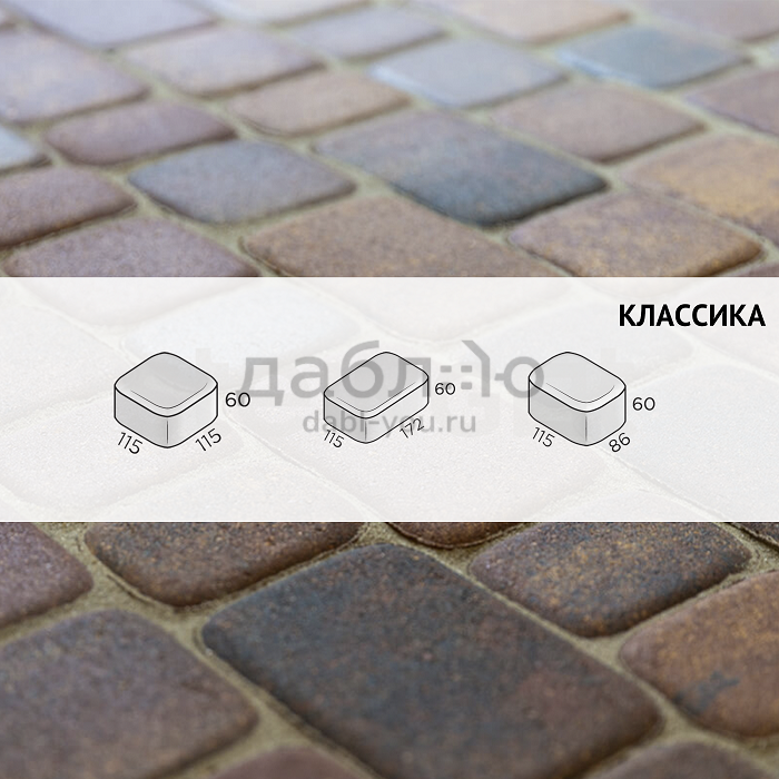 Брусчатка Steingot Классика Агатовый камень (Блэнд). Тротуарная плитка в классическим стиле с ярко выраженными фасками, состоящая из трех камней разных размеров, которые легко сочетать и создавать красивые узоры на мощении. Продажа брусчатки производится кратно целым поддонам!- Высота: 60 мм