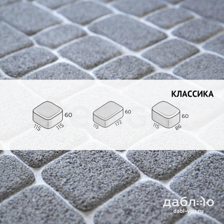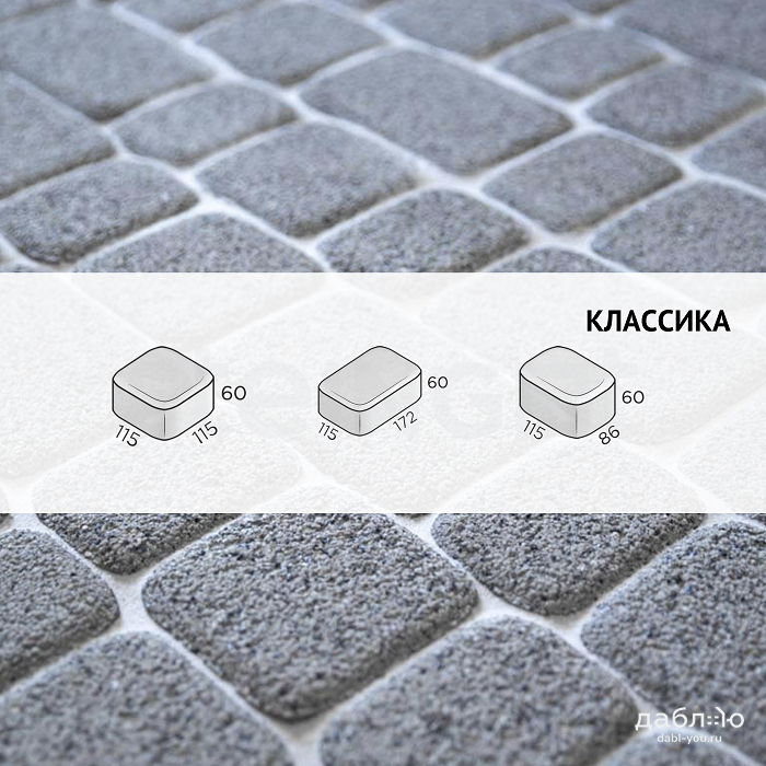 Брусчатка Steingot Классика Fumo Bello. Тротуарная плитка в классическим стиле с ярко выраженными фасками, состоящая из трех камней разных размеров, которые легко сочетать и создавать красивые узоры на мощении. Продажа брусчатки производится кратно целым поддонам!- Высота: 60 мм