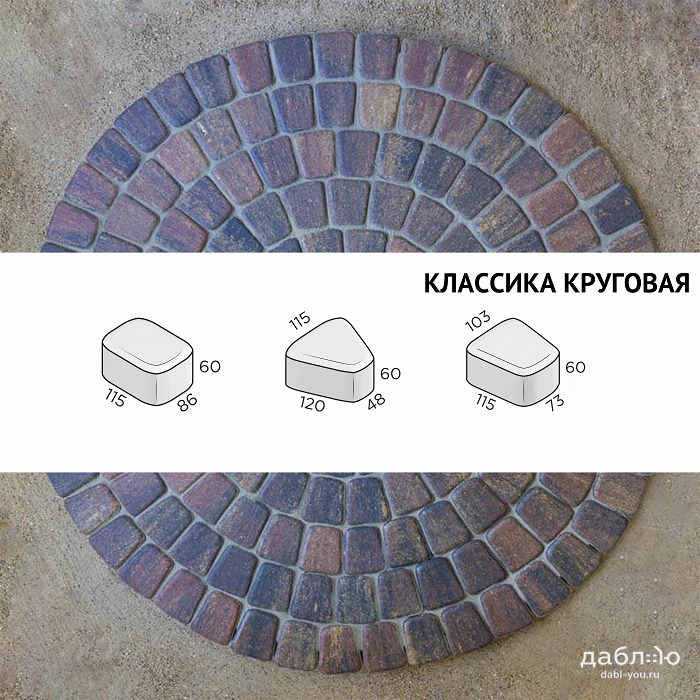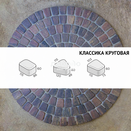 Брусчатка Steingot Классика круговая Бленд. Тротуарная плитка в классическим стиле с ярко выраженными фасками, состоящая из трех камней разных размеров, которые легко сочетать и создавать красивые узоры на мощении. Форма предназначена для выполнения простых круговых и сложных радиусных узоров. Продажа брусчатки производится кратно целым поддонам!- Высота: 60 мм