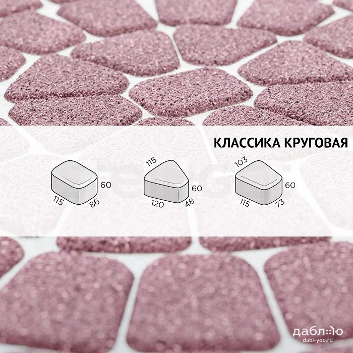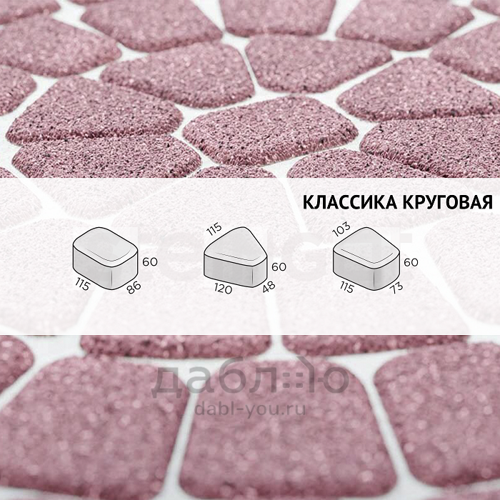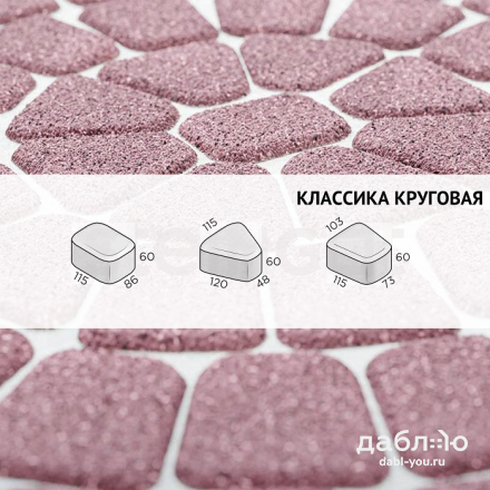Брусчатка Steingot Классика круговая Rosa Sardo. Тротуарная плитка в классическим стиле с ярко выраженными фасками, состоящая из трех камней разных размеров, которые легко сочетать и создавать красивые узоры на мощении. Форма предназначена для выполнения простых круговых и сложных радиусных узоров. Продажа брусчатки производится кратно целым поддонам!- Высота: 60 мм