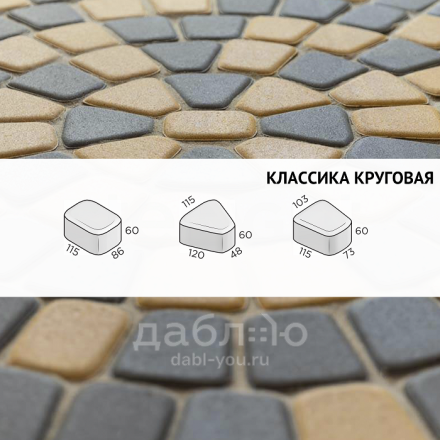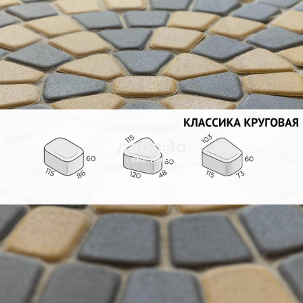 Брусчатка Steingot Классика круговая Серая. Тротуарная плитка в классическим стиле с ярко выраженными фасками, состоящая из трех камней разных размеров, которые легко сочетать и создавать красивые узоры на мощении. Форма предназначена для выполнения простых круговых и сложных радиусных узоров. Продажа брусчатки производится кратно целым поддонам!- Высота: 60 мм