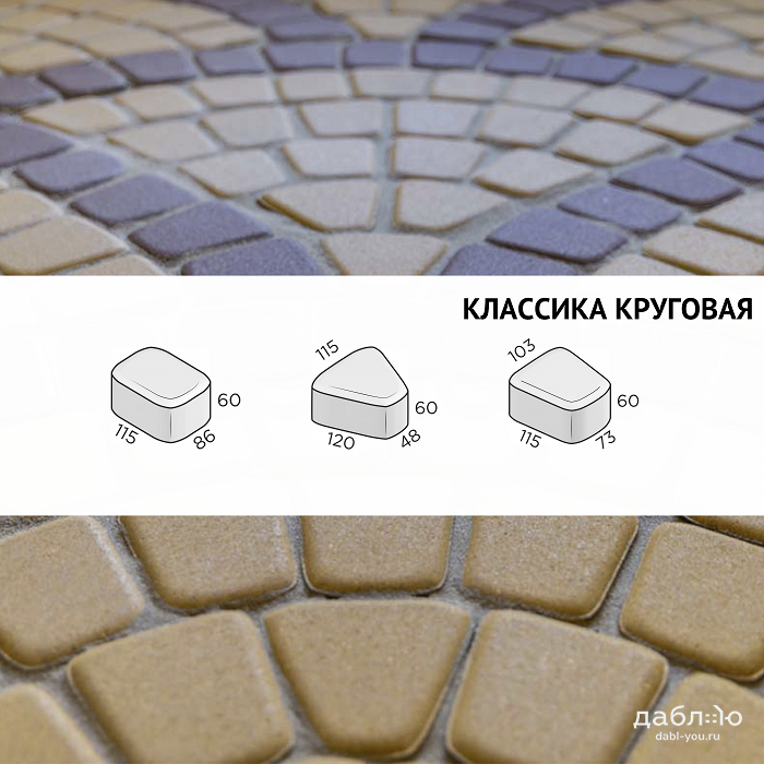 Брусчатка Steingot Классика круговая Желтая. Тротуарная плитка в классическим стиле с ярко выраженными фасками, состоящая из трех камней разных размеров, которые легко сочетать и создавать красивые узоры на мощении. Форма предназначена для выполнения простых круговых и сложных радиусных узоров. Продажа брусчатки производится кратно целым поддонам!- Высота: 60 мм